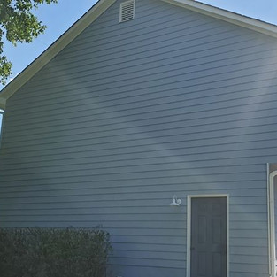 We started the project, like we do with the majority of our exterior projects, by soft washing all of the mildew and grime off of the house. Just washing it alone helped in bringing some life back to it. After we washed it we pulled the downspouts off so we could prep and paint behind them. We then began repairing the wood rot. The siding that is on it is the LP siding that everyone had issues with years ago so there were quite a few boards that were rotted. We replaced them with new LP siding to match the texture. We then replaced a few fascia boards and soffits as well as every piece of brick moulding around the windows with pvc composite moulding. We also installed a new side entry door.